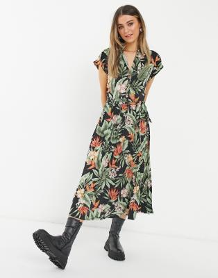 Oasis pleated midi clearance dress, Oasis Pleated Midi Shirt Dress In Palm Print multi ModeSens clearance