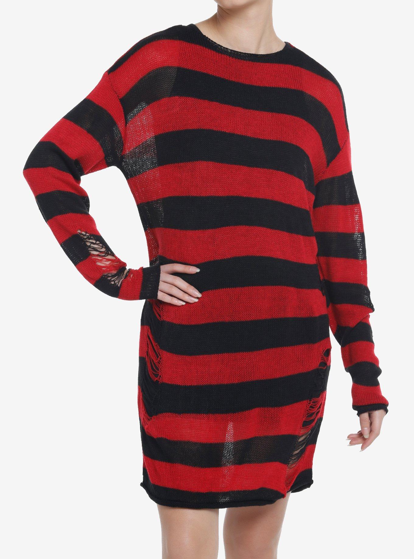 Social Collision Red Black Distressed Sweater Dress Hot Topic