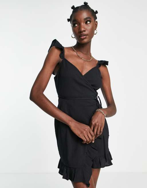 River Island frill wrap mini dress in black
