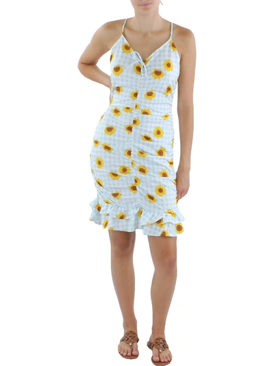 Derek Heart Womens Floral Check Open Back Bodycon Dress In Blue