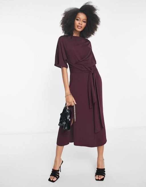 Round neck midi clearance dress, Gathered Round Neck Midi Dress Black clearance