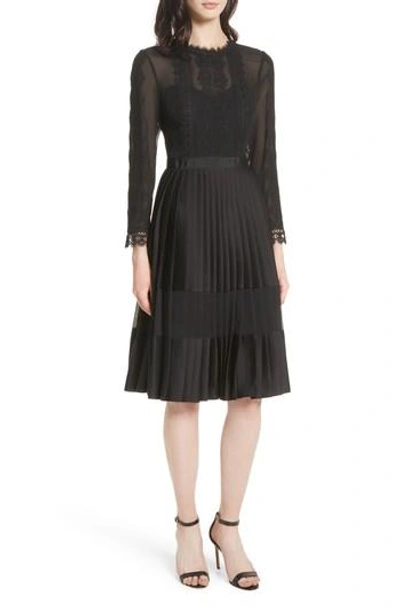 Ted Baker Looez Lace Trim Pleated Midi Dress Black 6