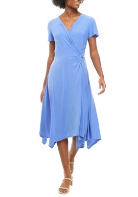 Perceptions Women s Short Sleeve Solid Faux Wrap Dress