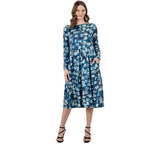 Navy floral long sleeve pleated clearance midi dress, 24seven Comfort Apparel Womens Blue Brushstroke Print Long Sleeve clearance