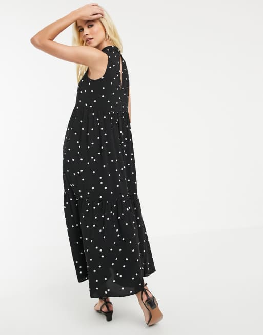 Warehouse polka dot clearance tiered midi dress, Warehouse polka dot tiered shirt dress in blue ASOS clearance