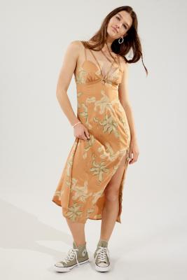 UO First Light Cut Out Floral Midi Dress Urban Outfitters UK