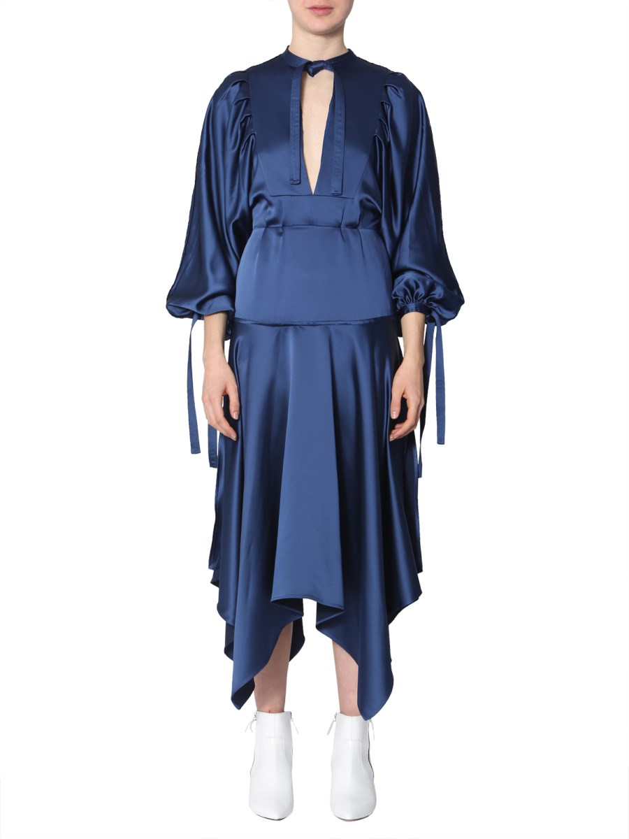 Self portrait satin clearance midi dress, Self Portrait Red Satin Asymmetric Hem Midi Dress L Self Portrait clearance