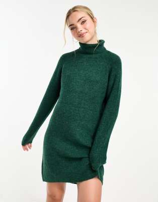 Dark green jumper clearance dress, Green Basic Roll Neck Knit Jumper Dress PrettyLittleThing clearance