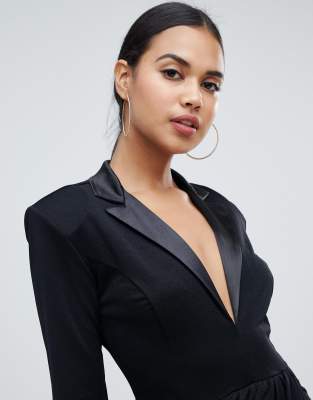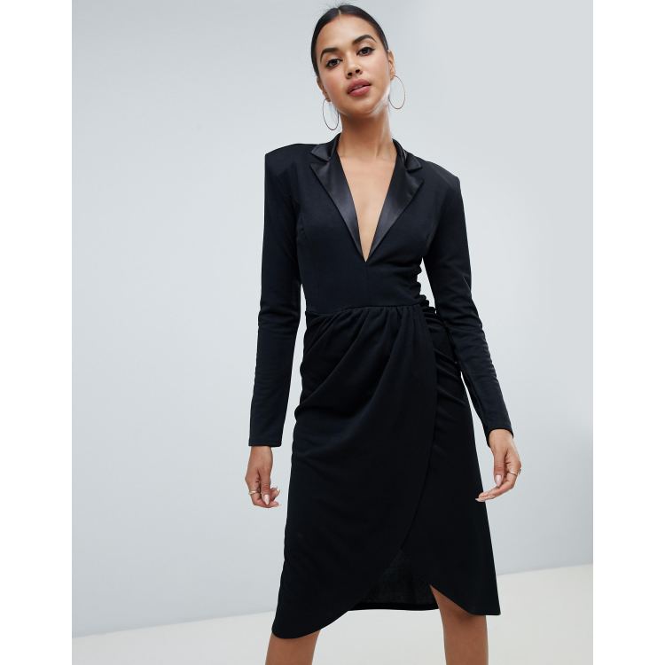 Club L London Club L Tuxedo Wrap Midi Dress in Black Lyst