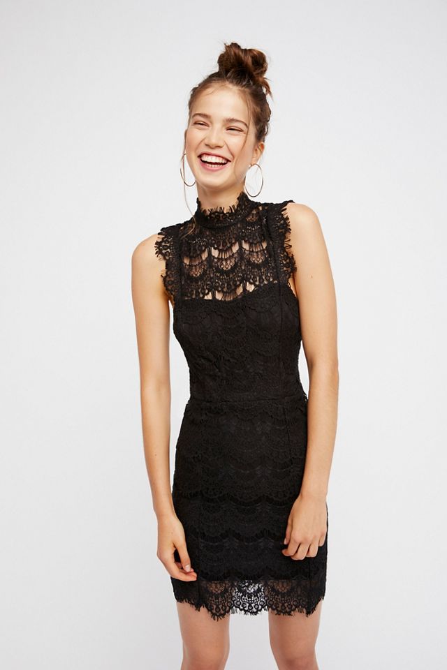 Free People Intimately Daydream Bodycon Slip Black Lace Sheath Dress M