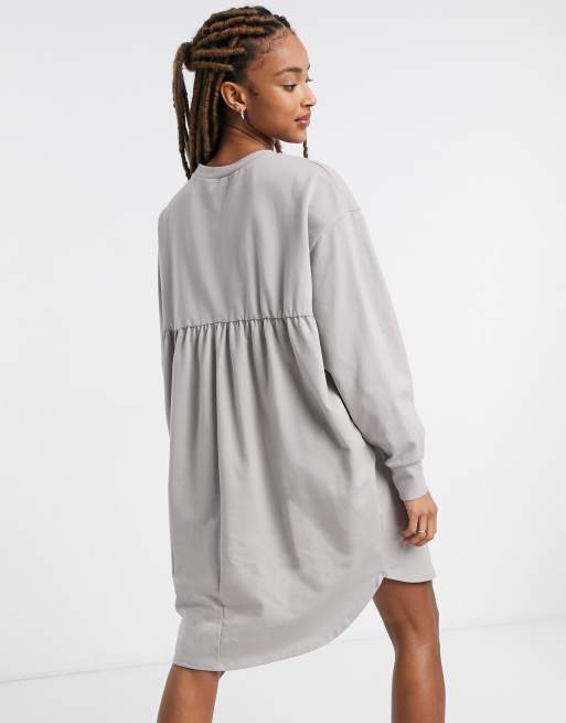 ASOS DESIGN oversized smock back sweater dress in light gray