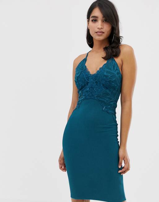 Lipsy floral applique high neck bodycon dress in teal ASOS