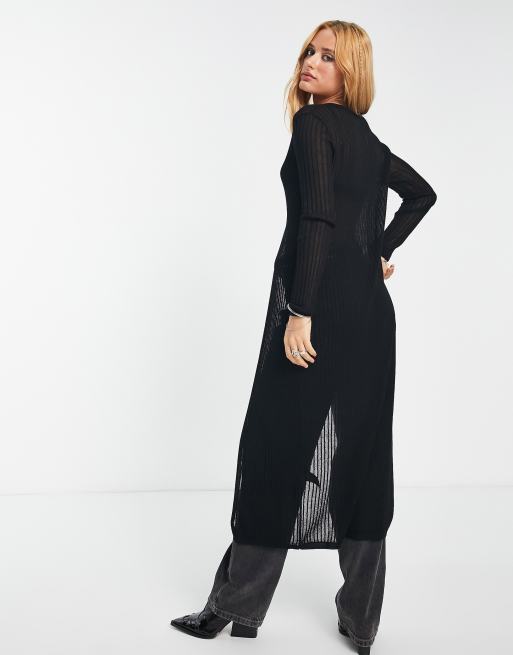 ASOS DESIGN maxi cardigan in sheer rib in black ASOS