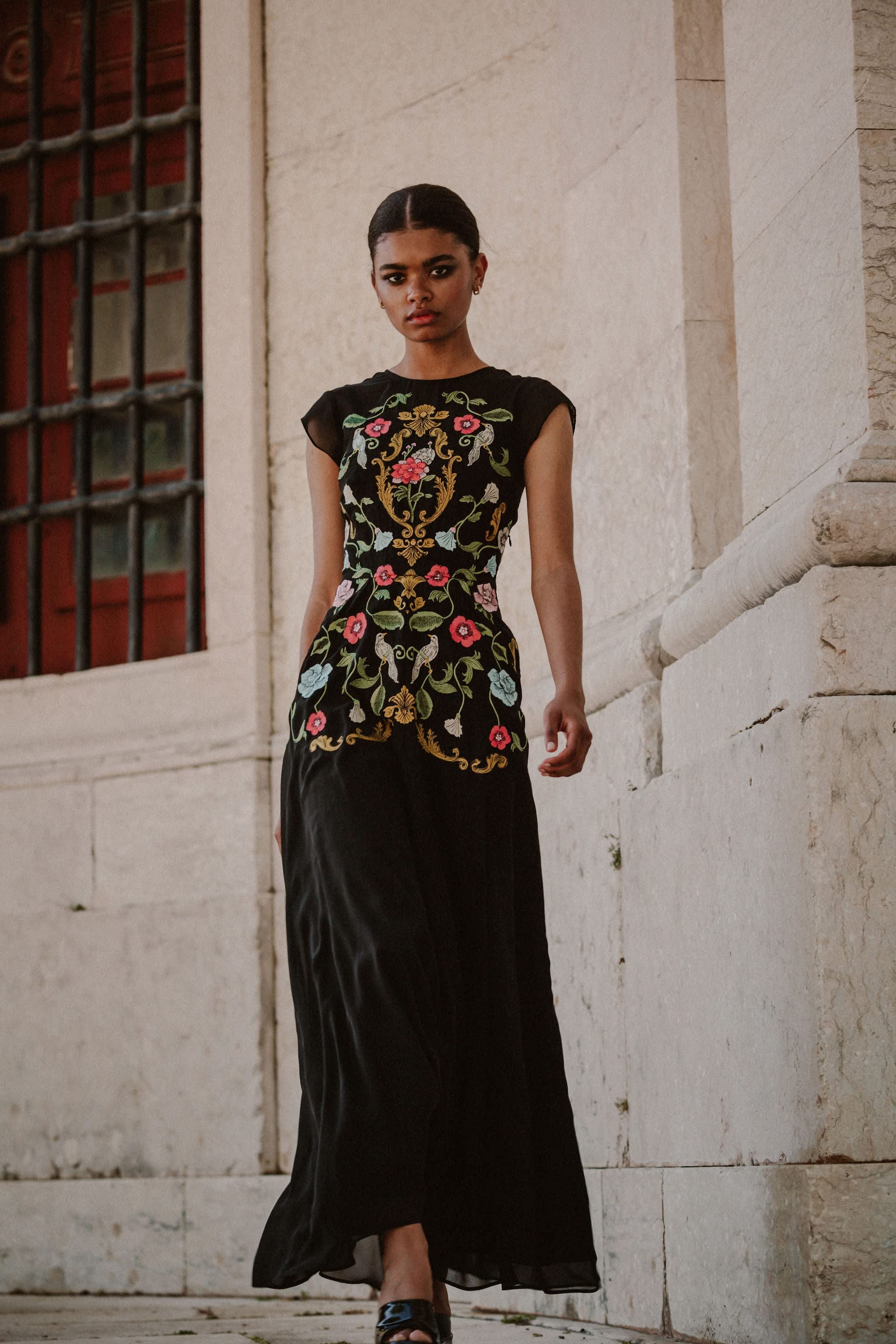 Madeline Embroidered Black Maxi Dress by Aarabhi London