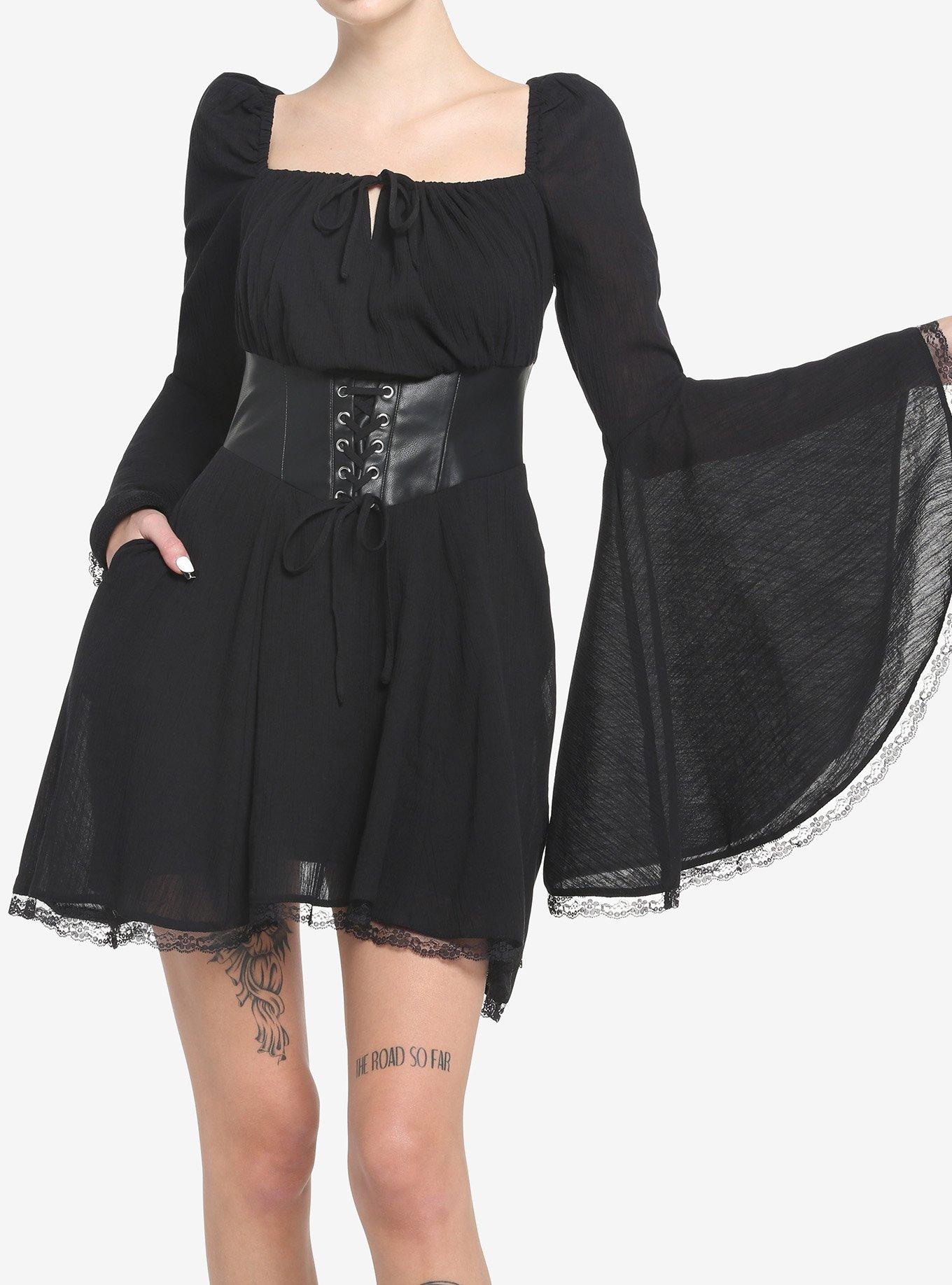 Vivicastle Long Flare Bell Sleeve Blouse Mini Dress Small Black
