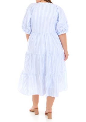 ENGLISH FACTORY Plus Size Puff Sleeve Striped Ruffle Maxi Dress belk