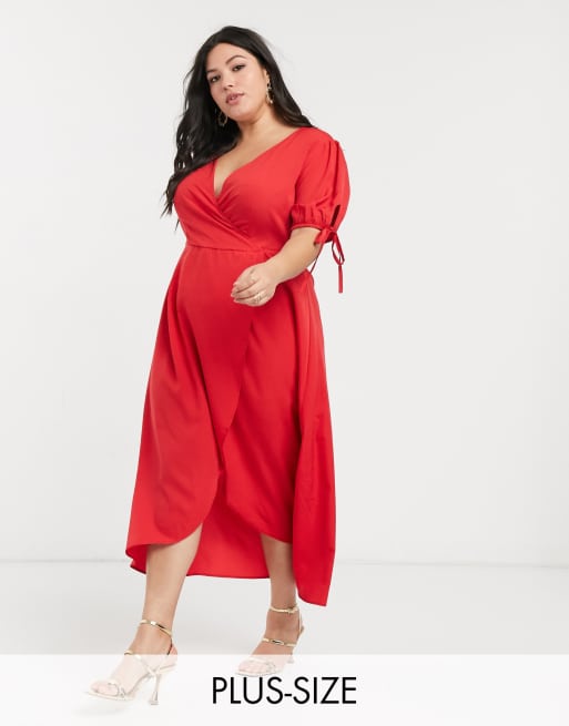AX PARIS CURVE Black Wrap Gold Buckle Midi Dress very