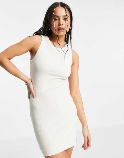 White clearance vest dress, Bershka racer ribbed vest dress in white clearance