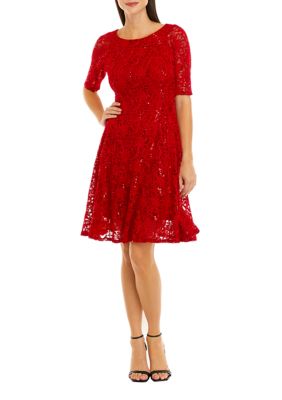 Chris McLaughlin Women s Red Lace Sequin Dress