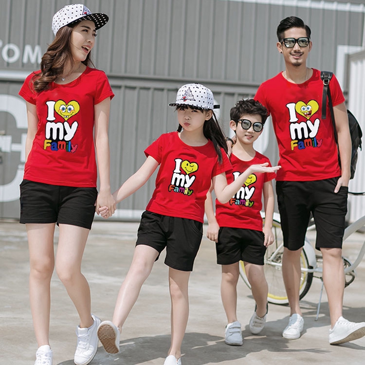 I Love My Family Parent child Attire 10 Colors Plus Size Family Matching Clothes Outfit T Shirt Family Wear Set
