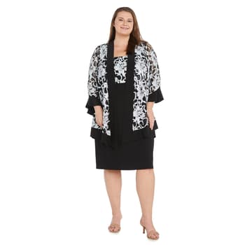 Plus Size R M Richards Floral Sequin Trim Jacket Dress
