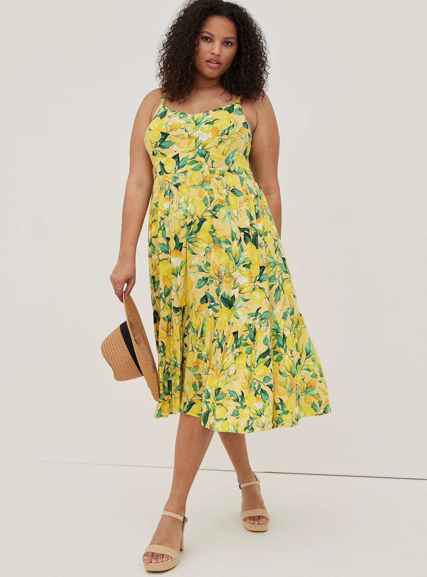 Plus Size Tiered Midi Dress Lemon Print Yellow Torrid