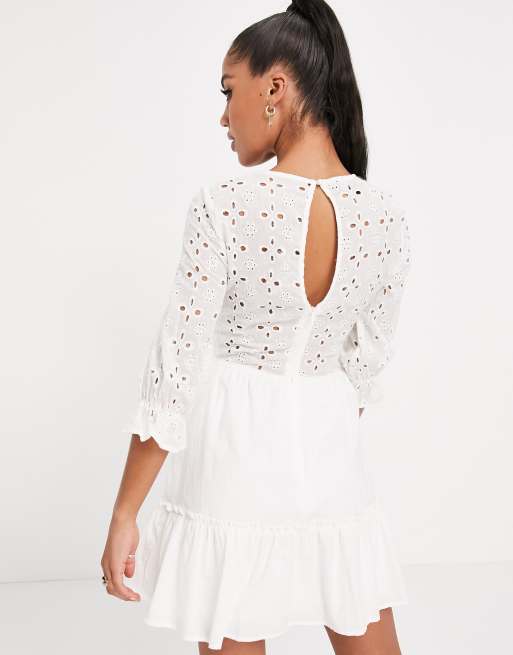 White long sleeve clearance skater dress, Parisian eyelet long sleeve skater dress in white ASOS clearance