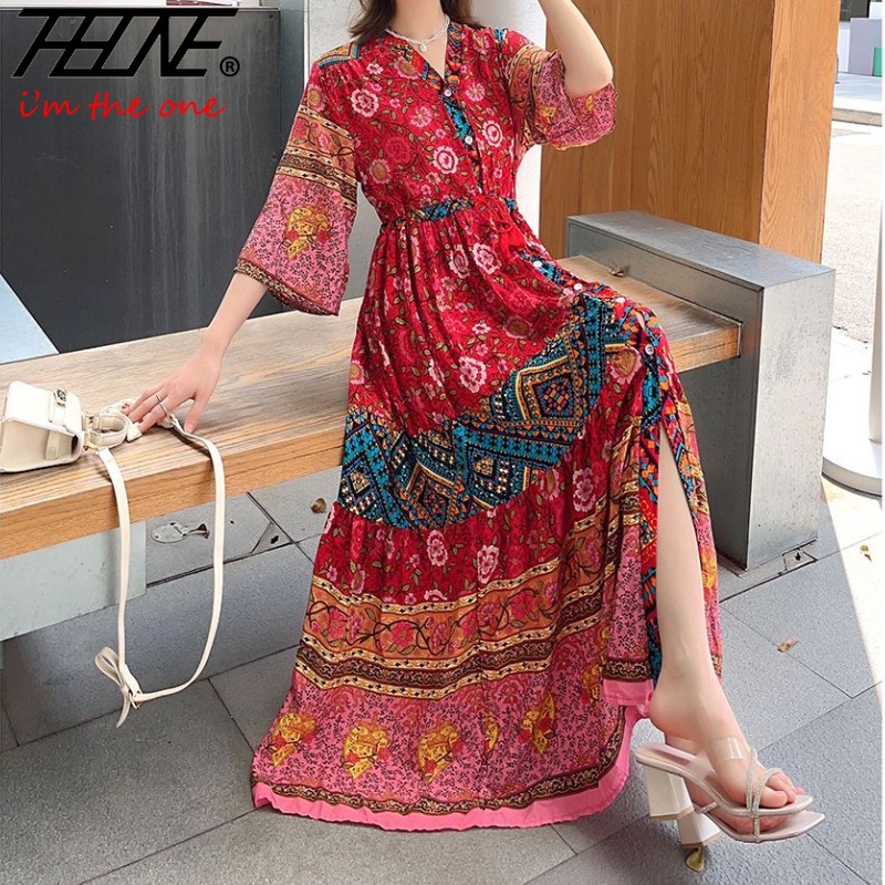 THHONE Indian Maxi Long Dress Women Clothes Baju Plus Tamanho Flor