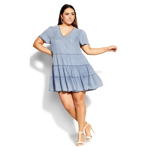 City Chic Women s Plus Size Denim Tier Dress Light Denim 16w