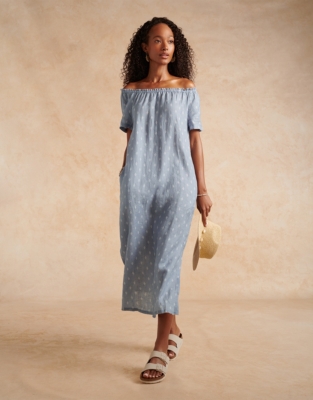 Linen maxi dress clearance with sleeves, Linen Off The Shoulder Printed Maxi Dress Clothing Sale The clearance