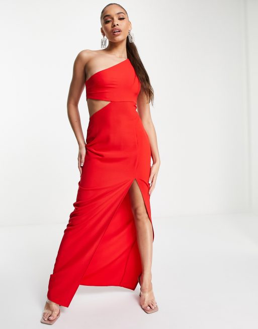 Vesper one shoulder maxi dress with thigh split in red