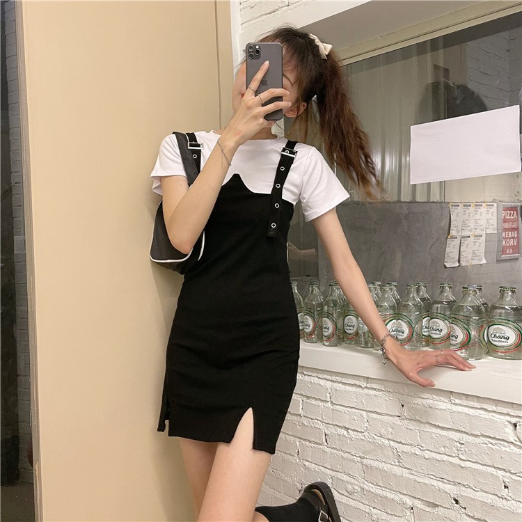 Floral one piece clearance dress short, Trendy Sweet floral Korean version Short dresses Simple One piece clearance
