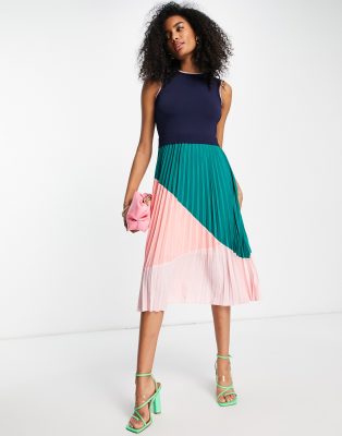 Coast rockafella colour clearance block pleated dress, Pleated Color Block Side Cutout Maxi Dress Express clearance
