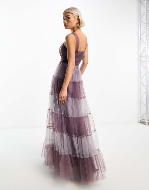Lace Beads tulle two tone maxi dress in purple ASOS