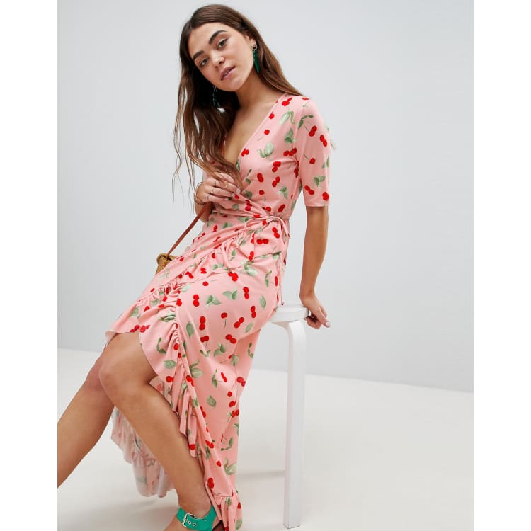 Cherry clearance print sundress, ASOS DESIGN Wrap Maxi Dress In Cherry Print clearance