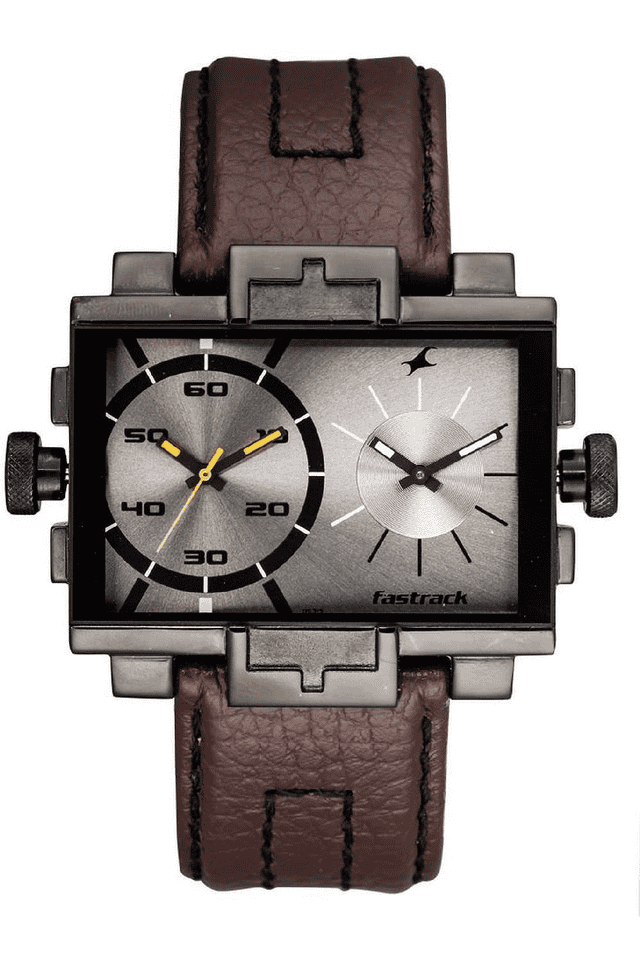 Fastrack Dual Time Quartz Analog White Dial Leather Strap Watch for Guys