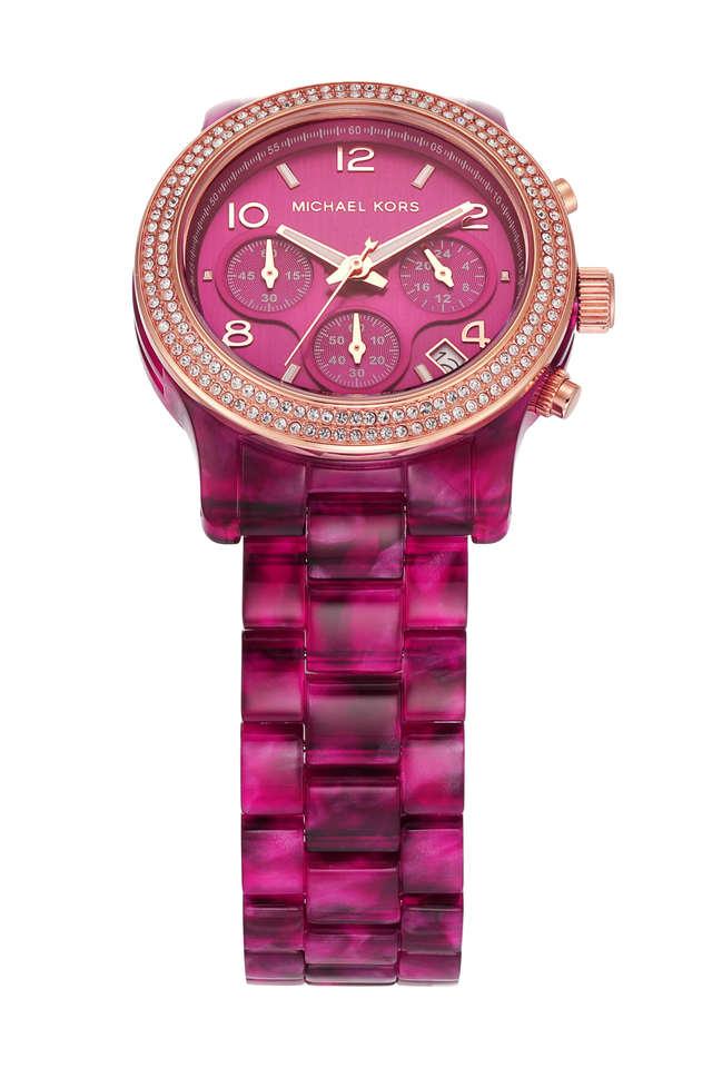Michael kors runway clearance pink, Michael Kors Slim Runway Three Hand Deep Pink Leather Watch clearance