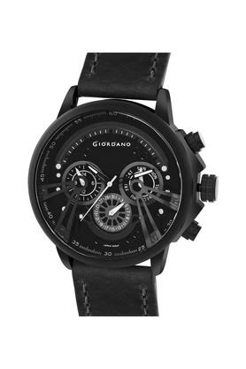 Buy GIORDANO Mens 48 mm SS2022 Black Dial Leather Band