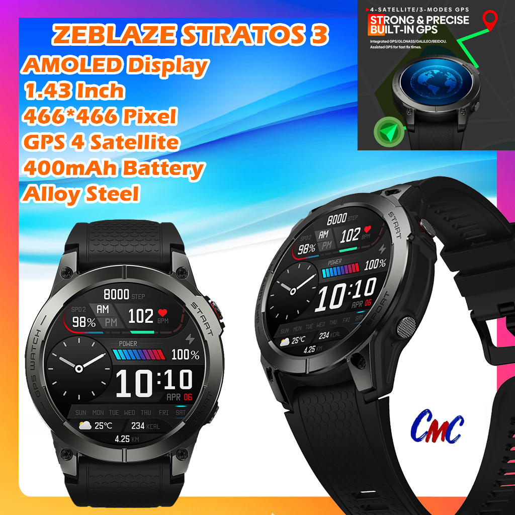 Zeblaze Stratos 3 Smart Watch GPS 1.43 Inch AMOLED Blood Oxygen Sleep Heart Rate Monitor Bluetooth Call Sports Watch Men Women