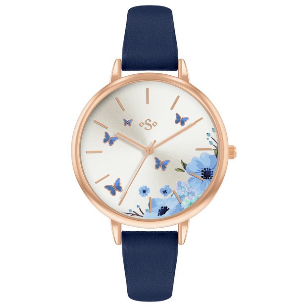 Buy Spirit Ladies Butterfly Dial Navy Strap Watch Womens watches
