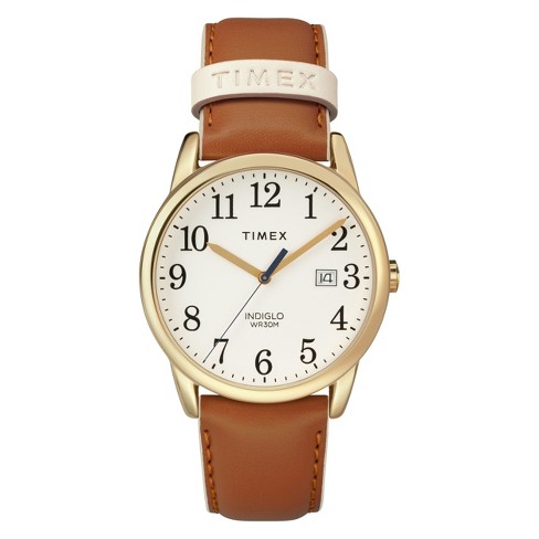 Men s Timex Easy Reader Watch with Leather Strap Gold Black