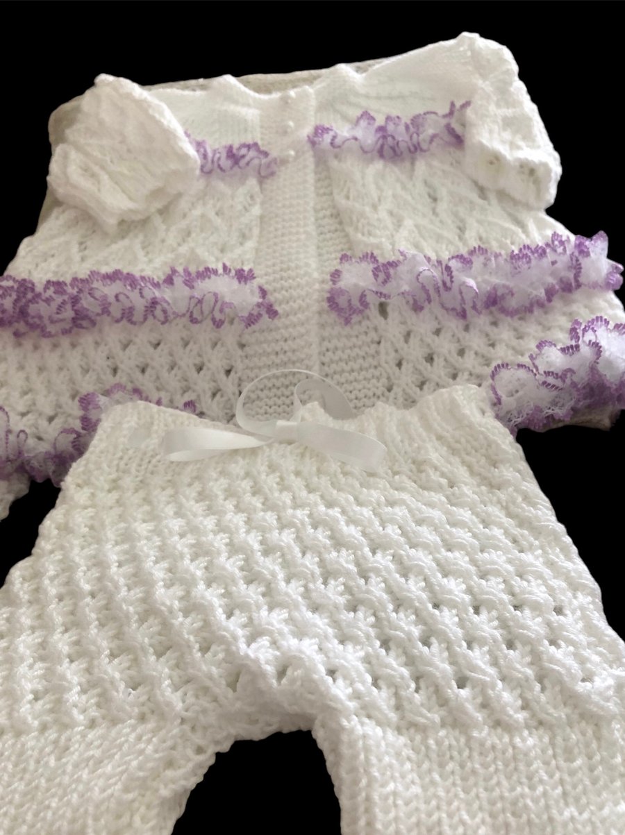 Pram set 3 piece hand knitted