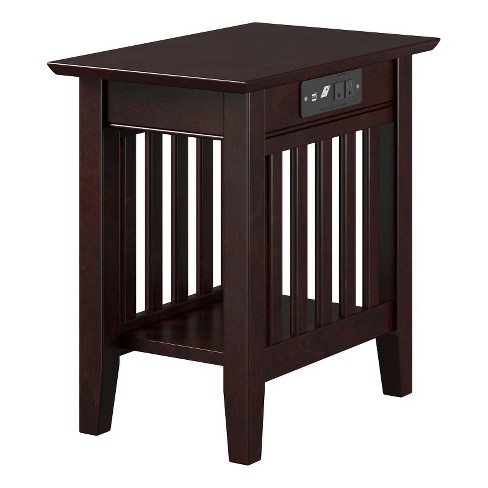 AFI Mission Solid Wood Mid Century End Table with USB Charger in Espresso
