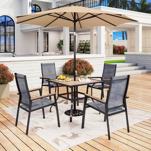 5pc Patio Set With Square Steel Table Lightweight Aluminum Frame