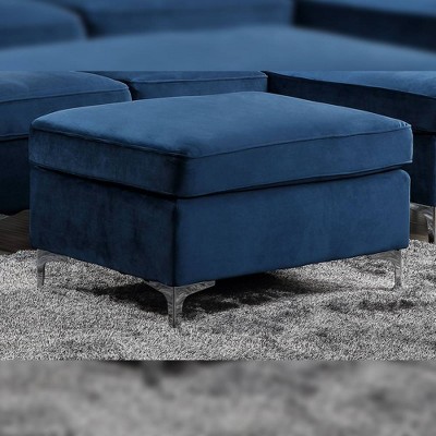 Parker Velvet Upholstered And Metal Storage Ottoman Blue gold