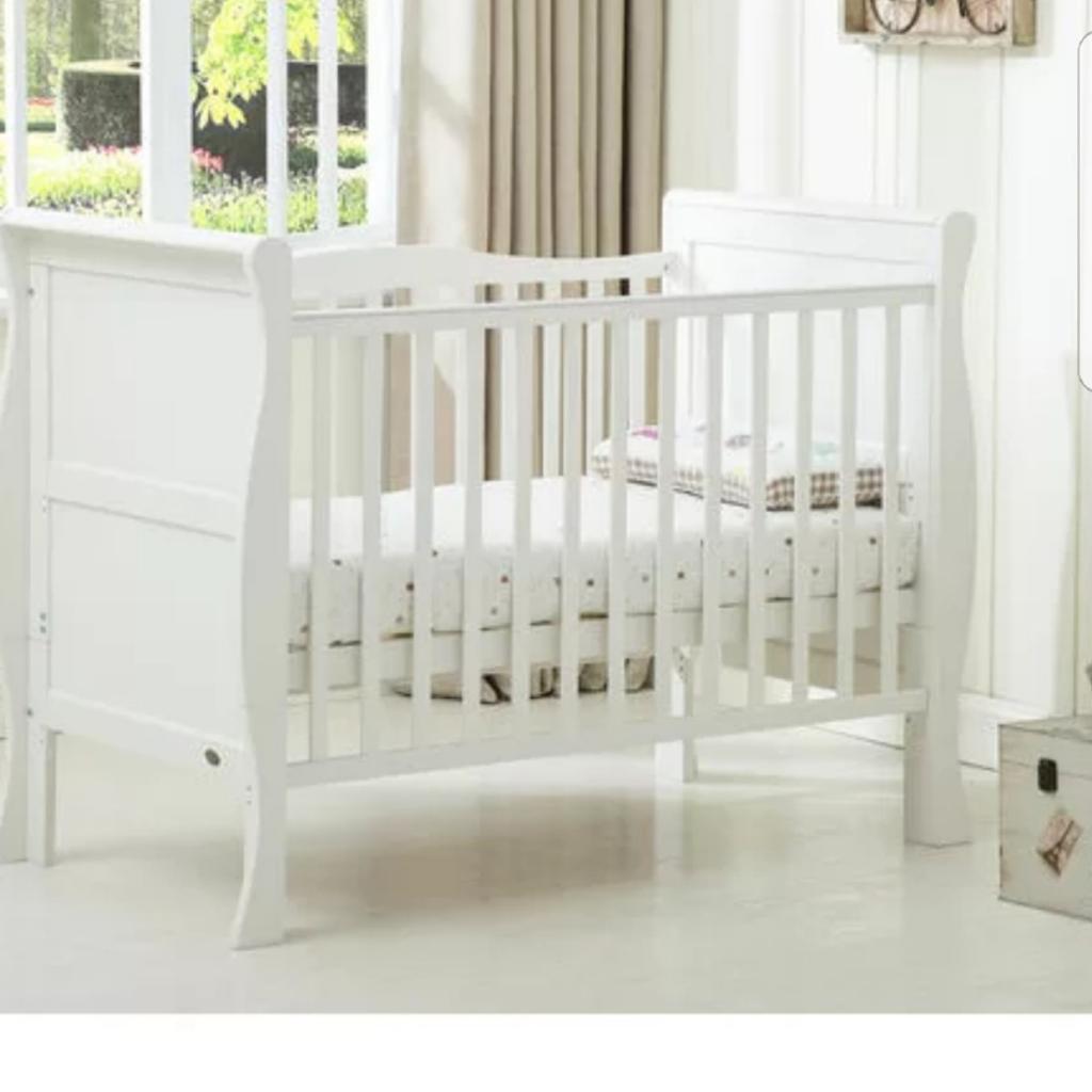 Jonathan sleigh cot clearance bed with mattress, Stella Sleigh Drop Side Cot Bed White Babymore clearance