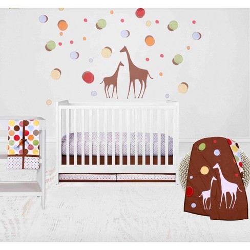 Bacati Baby Me Giraffe Orange green blue red brown 4 Pc Crib
