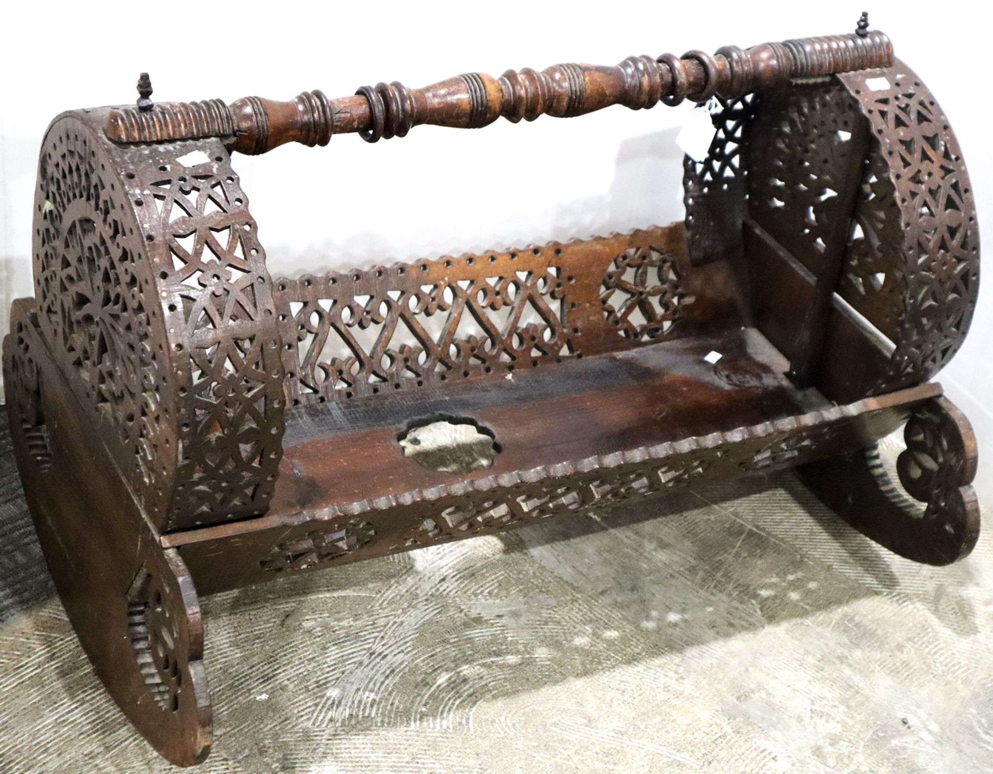 Antique Russian or Black Forest Ornate Fretwork Baby Crib