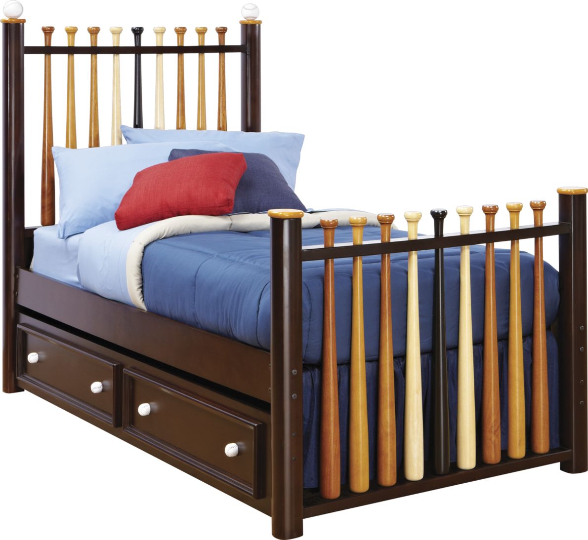 Batter Up Cherry 4 Pc Twin Baseball Bed w Trundle