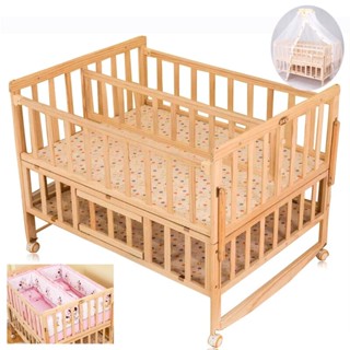 Big Size Nature Wood Solid Pine Wood Twin Baby Cot Bed Prices Baby Swing Wooden Cot Bed for Twins